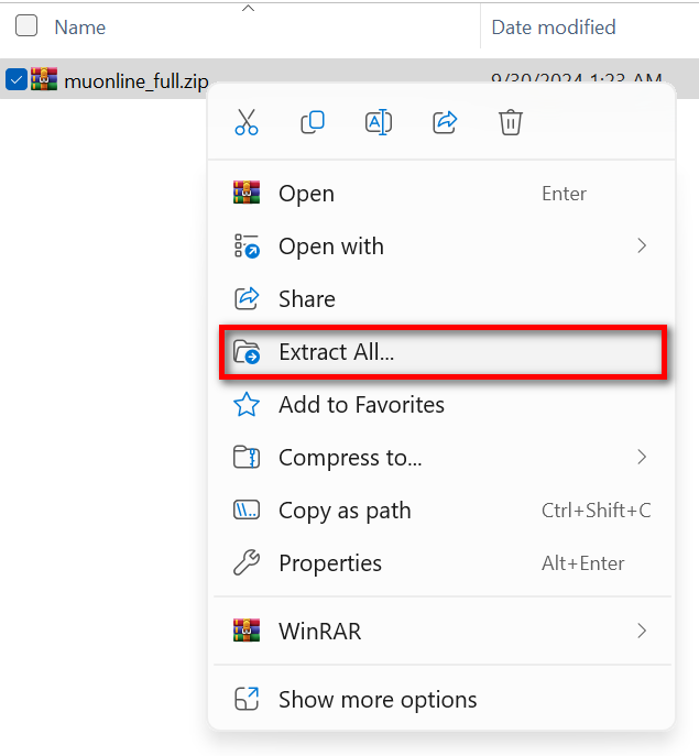 - Bước 2: Giải nén bản cài đã tải về bằng cách click chuột phải vào file nén đã tải về, chọn Extract All.